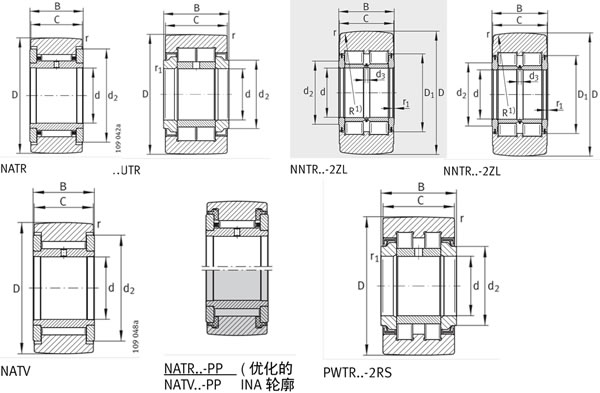 滿裝圓柱滾子支承型滾輪,迷宮密封有軸向引導(dǎo) |
