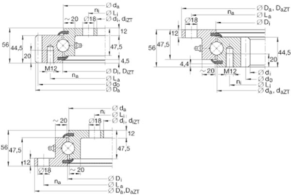 | 詳細信息(Detail) | 四點接觸回轉(zhuǎn)支撐軸承,輕系列無齒 | |