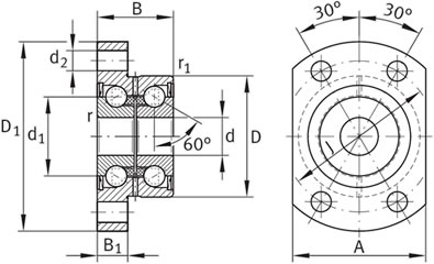 | 詳細信息(Detail) | 雙列帶法蘭角接觸球絲杠支撐軸承,雙防塵蓋 | |