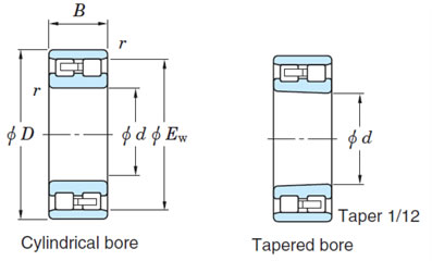 雙列圓柱滾子軸承,NNU型,1:18錐孔 | |
